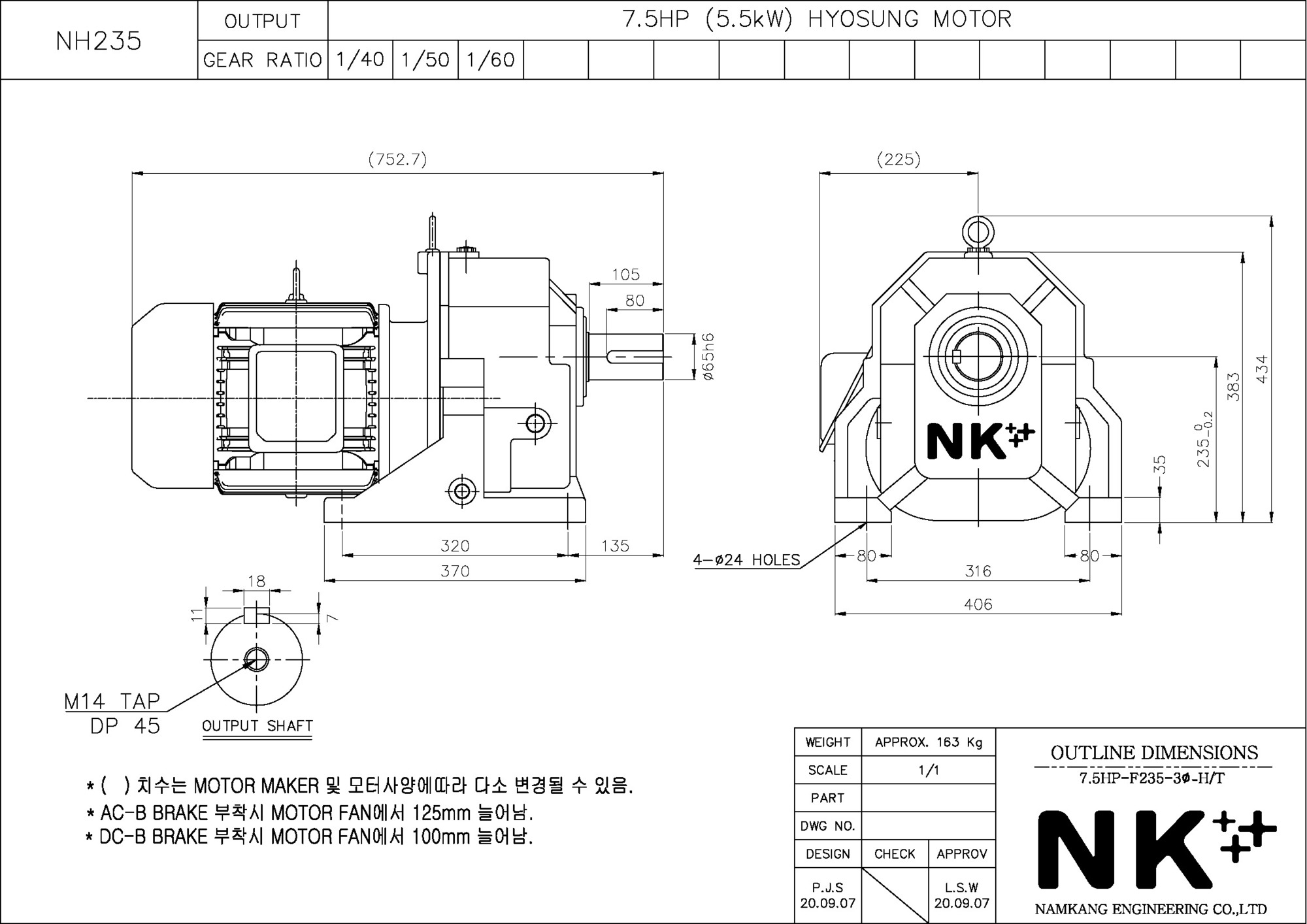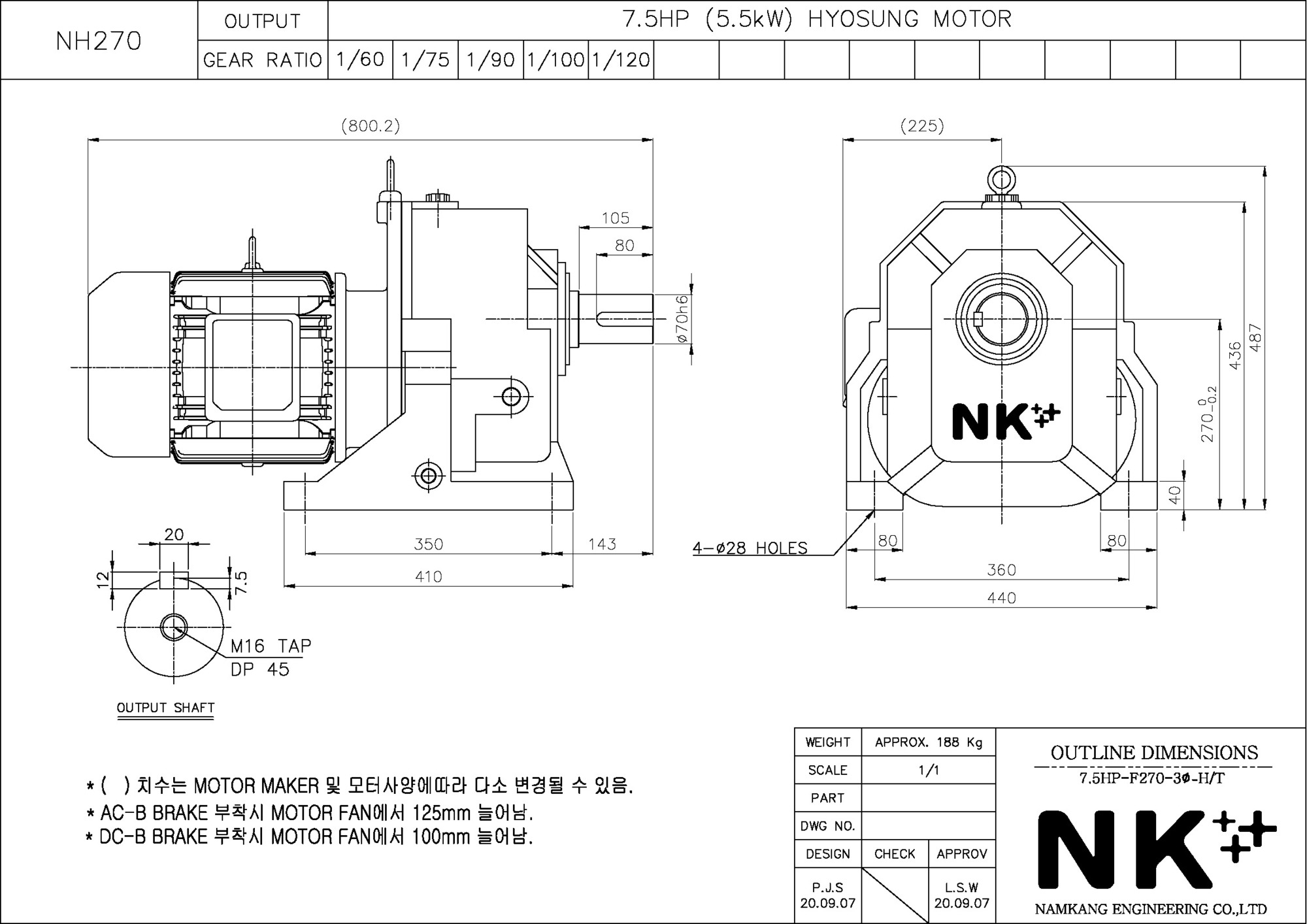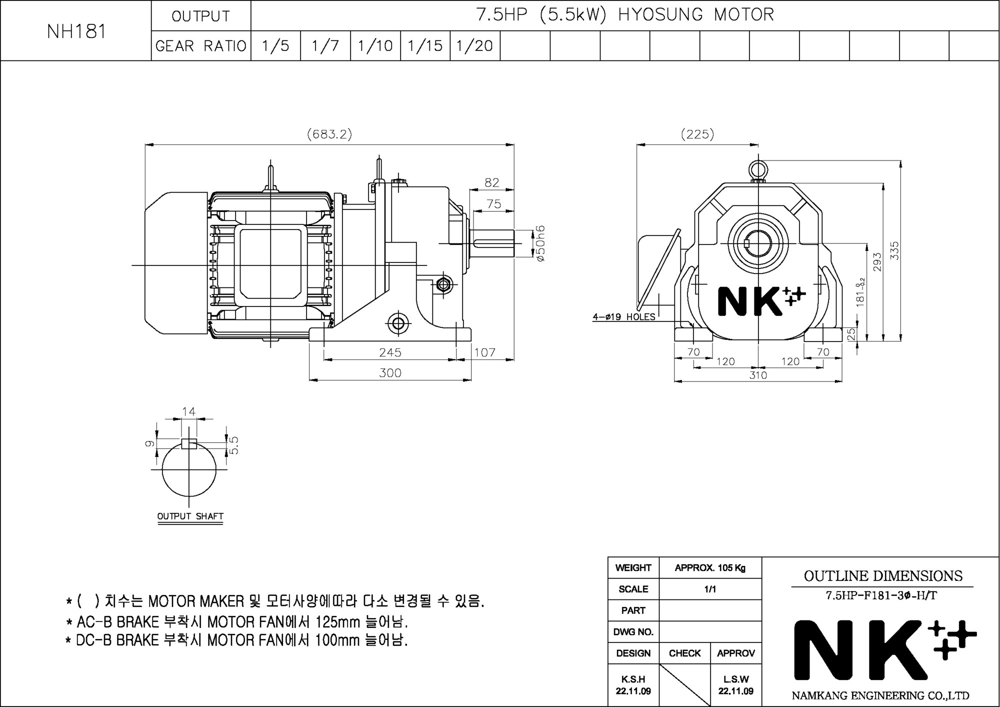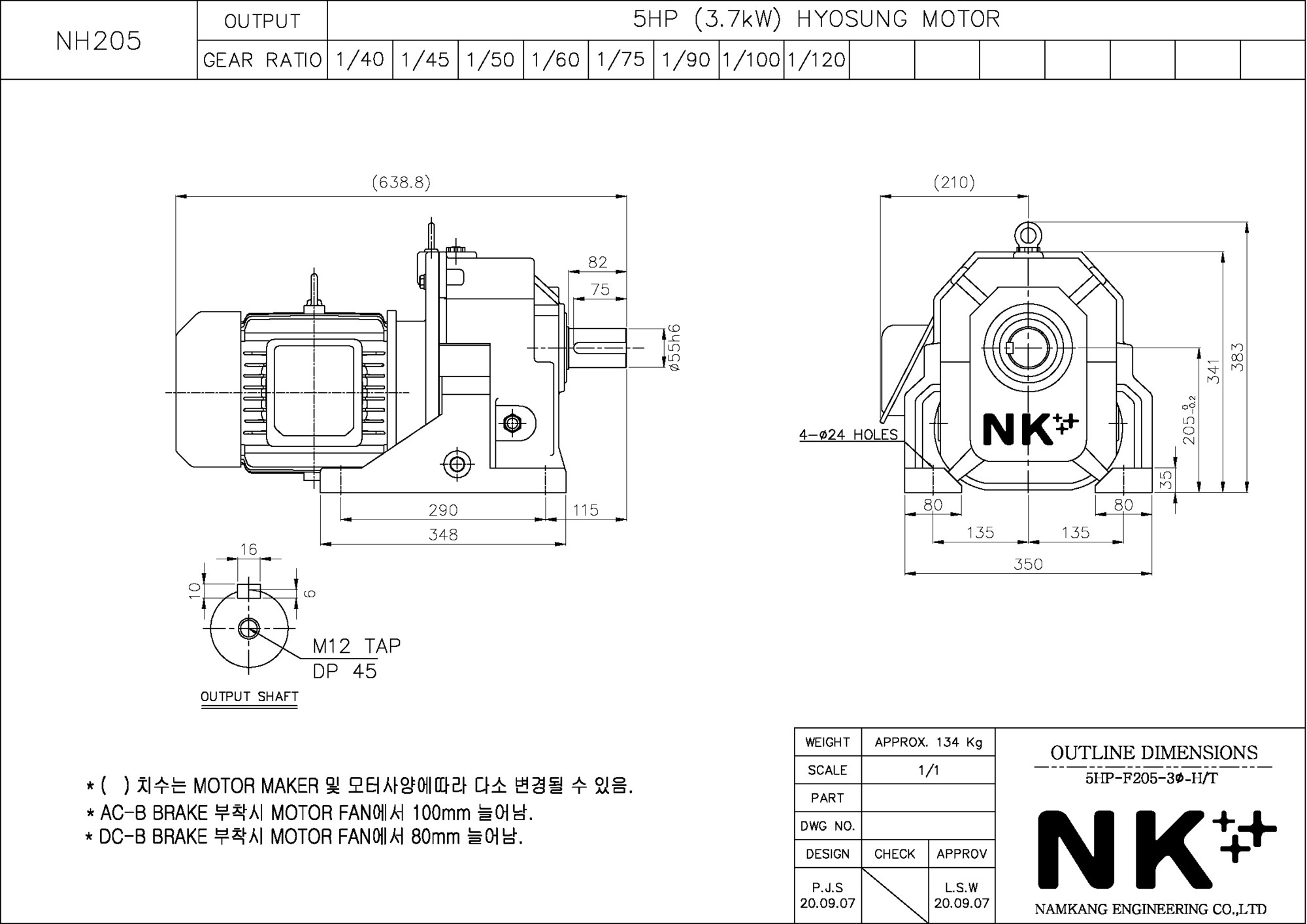 - NK PLUS MOTOR (남강 자사모터), 효성모터, 하이젠모터 적용