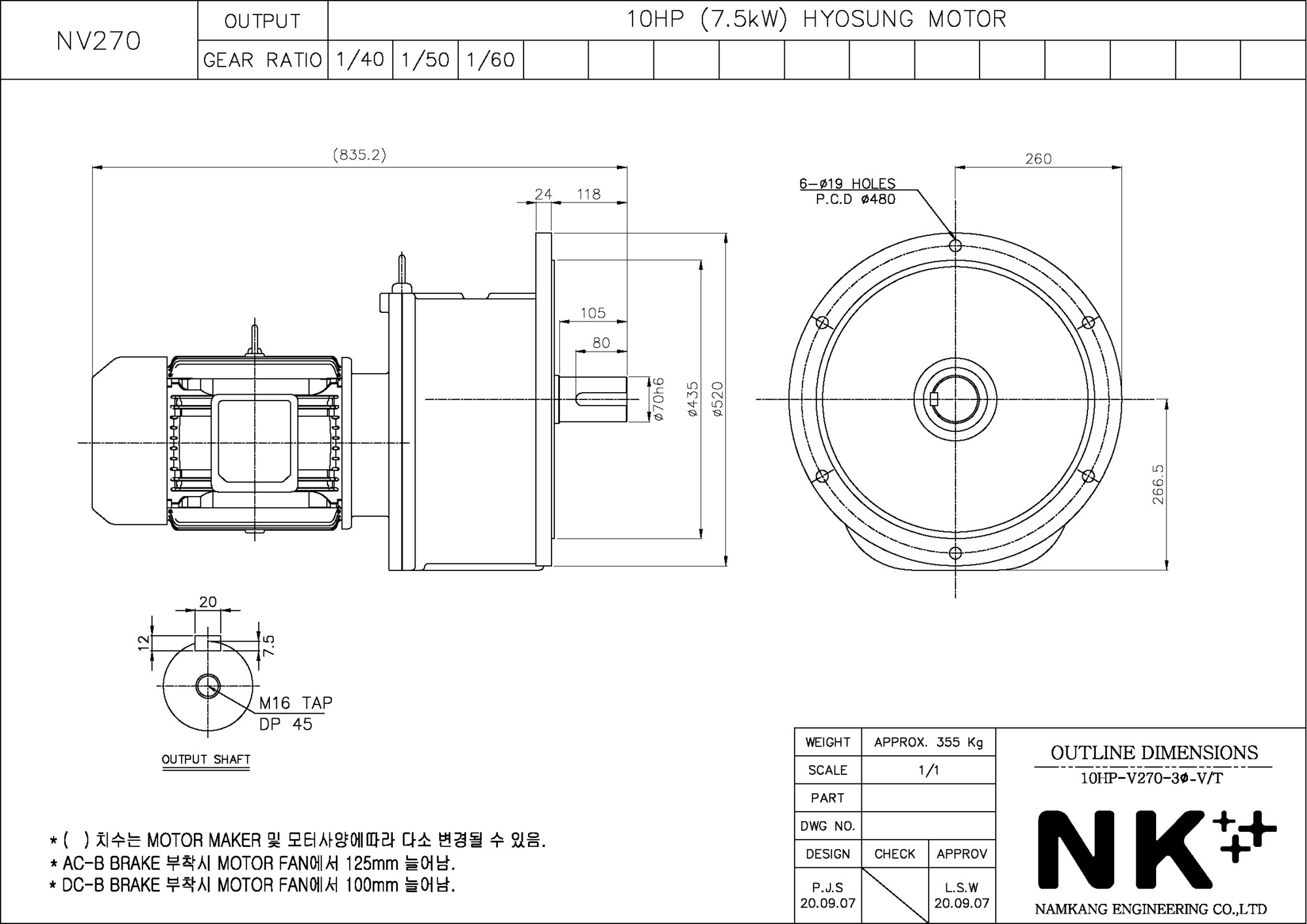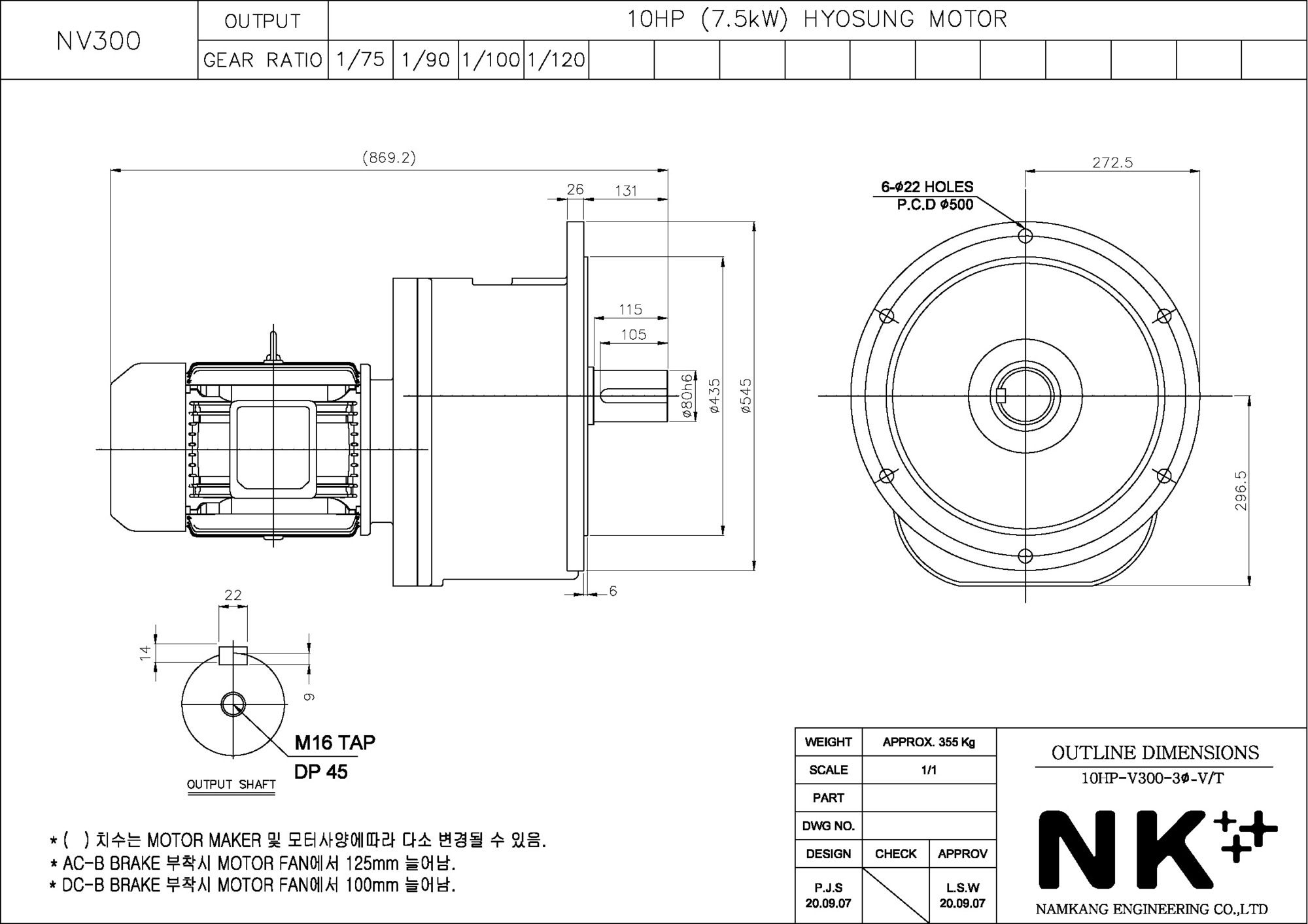 - NK PLUS MOTOR (남강 자사모터), 효성모터, 하이젠모터 적용