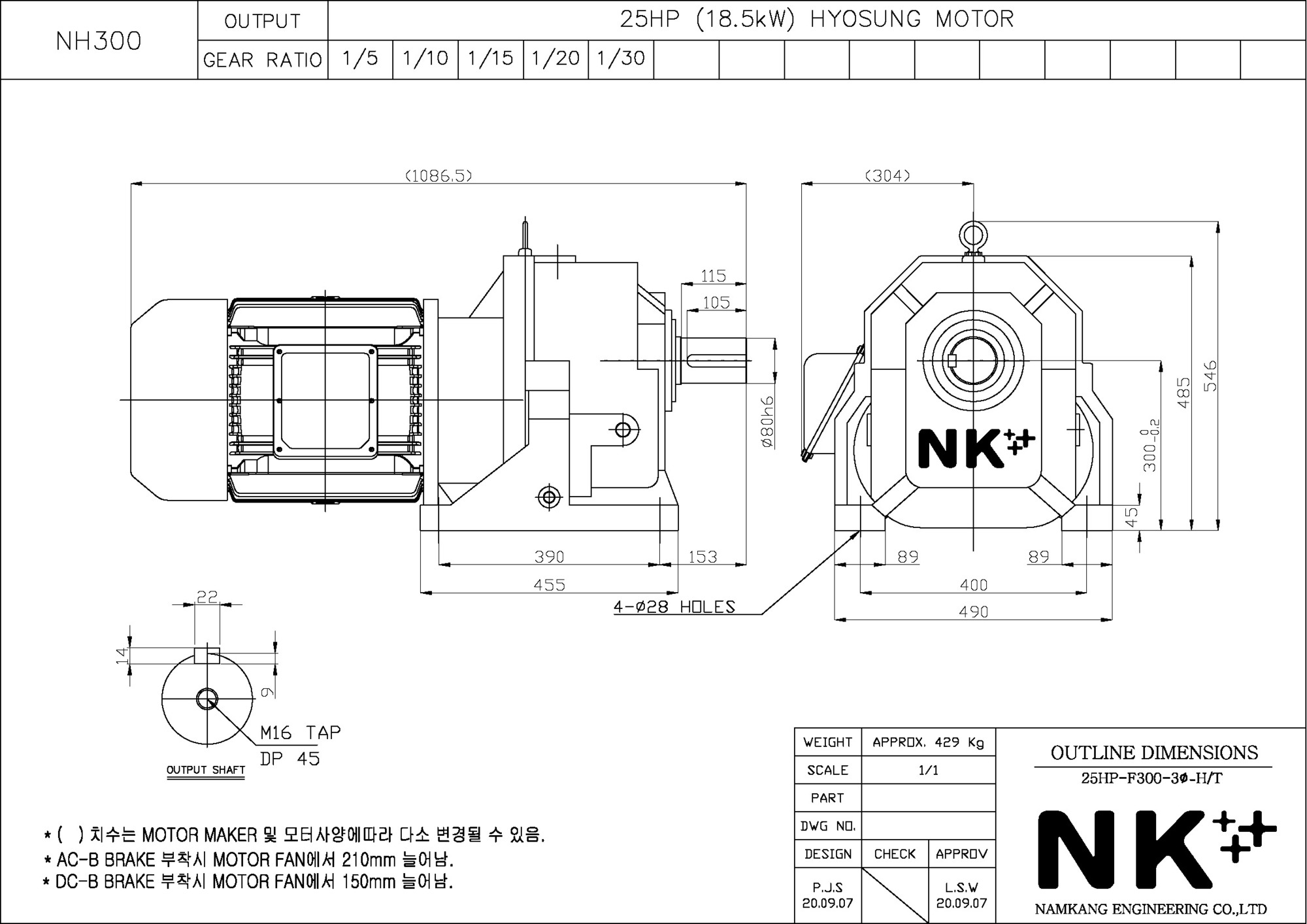 - NK PLUS MOTOR (남강 자사모터), 효성모터, 하이젠모터 적용